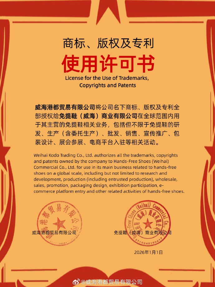 商标、版权及专利授权通报
