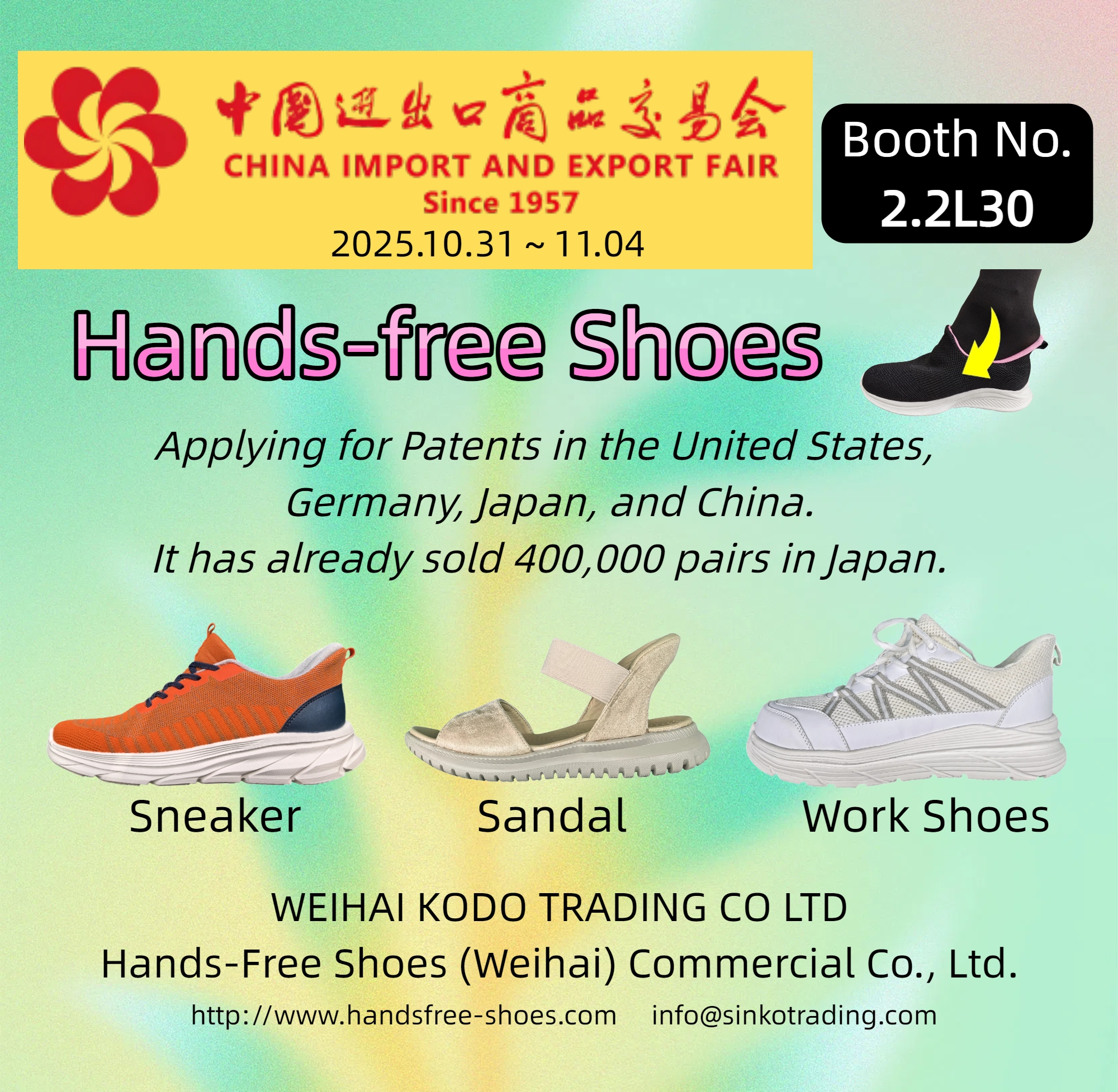 我司将参加第138届中国出口商品交易会(广交会),展期为10月31日至11月4日,现场展示hands-free鞋子产品。